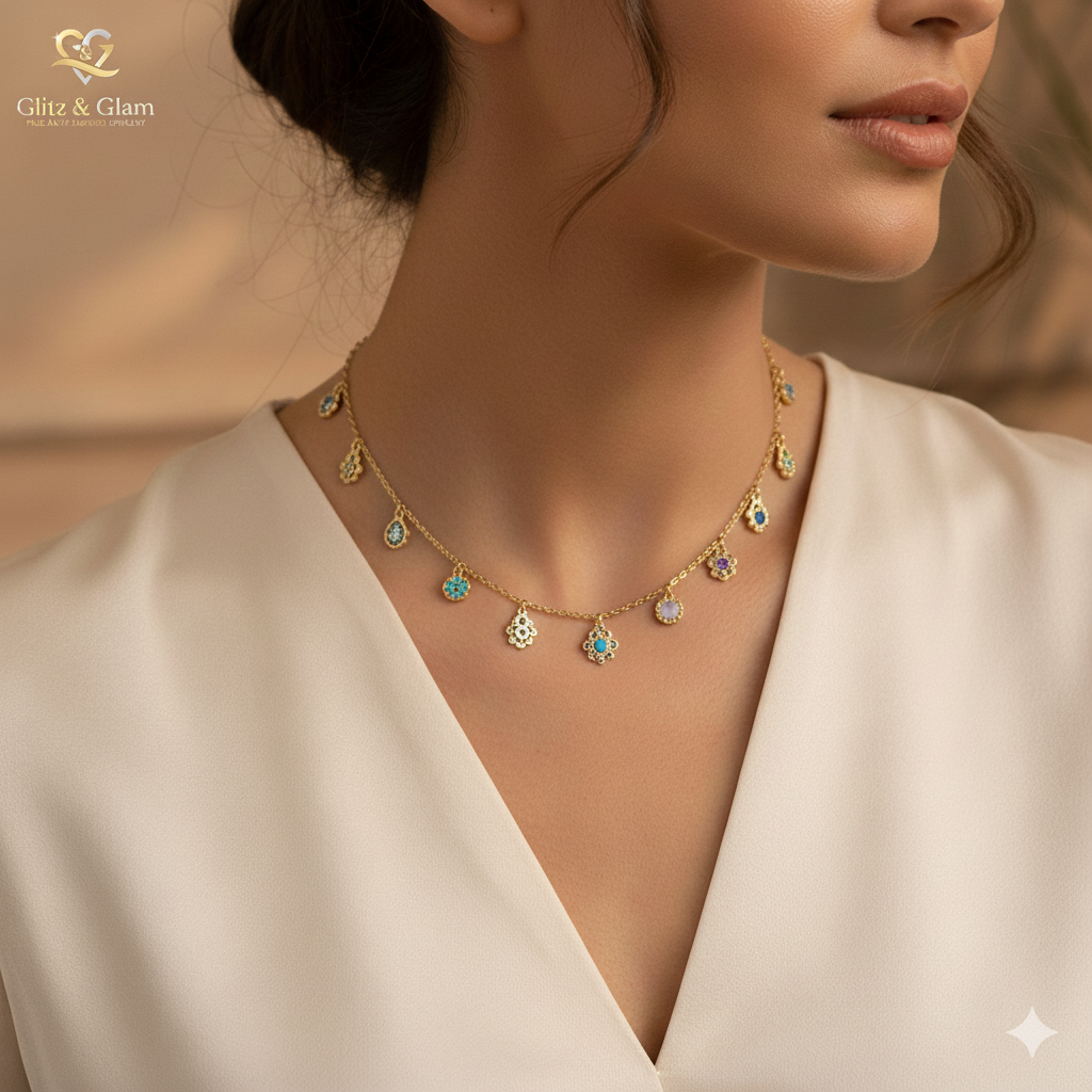 GLITZ & GLAM Our Products Anti - tarnish Earings Anti - tarnish Rings Anti - tarnish Bracelets Anti - tarnish Chains Trending Now New Arrival Necklace Set Best Seller Shop All Heart Charm Necklace Rs 1299 Initial Charm Necklace Rs 1299 Flower Charm Necklace Rs 1499 Radiance Stone Bracelet Rs 1399 Dual Star Stone Bracelet Rs 1399 Flowers stone Bracelet Rs 1499 Sere Heart Dual Earrings Rs 1099 Lune - O Hoops Earring Rs 999 Butterfly Stone Earring Rs 1099 White Diamond Pendent Set Rs 1499 Emeralds sqaure Stone Set Rs 1499 Bow Heart pendent Set Rs 1999